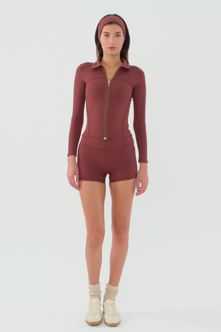- Uzun kollu, bedene oturan spor ceket.