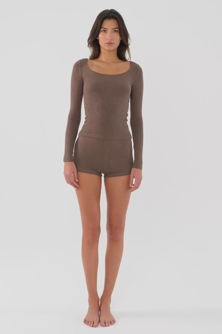 Modal Kumaşlı Uzun Kollu Şortlu Pijama Takımı Ribbed PJ (Los Ojos x Ece)