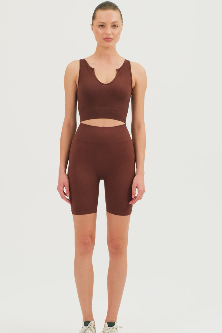 Yüksek Bel Fitilli Toparlayıcı Kısa Spor Tayt