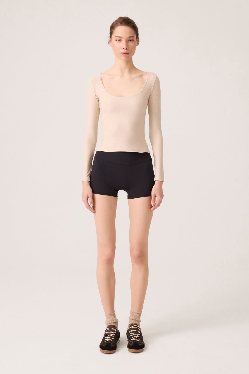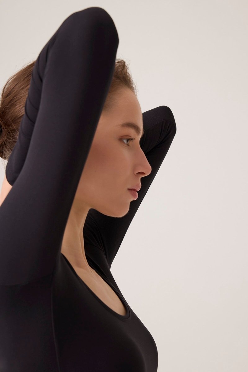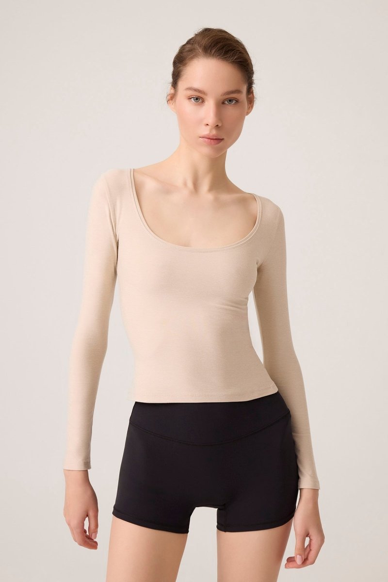 Uzun Kollu U Yaka Spor Bluz Scoop Neck Top