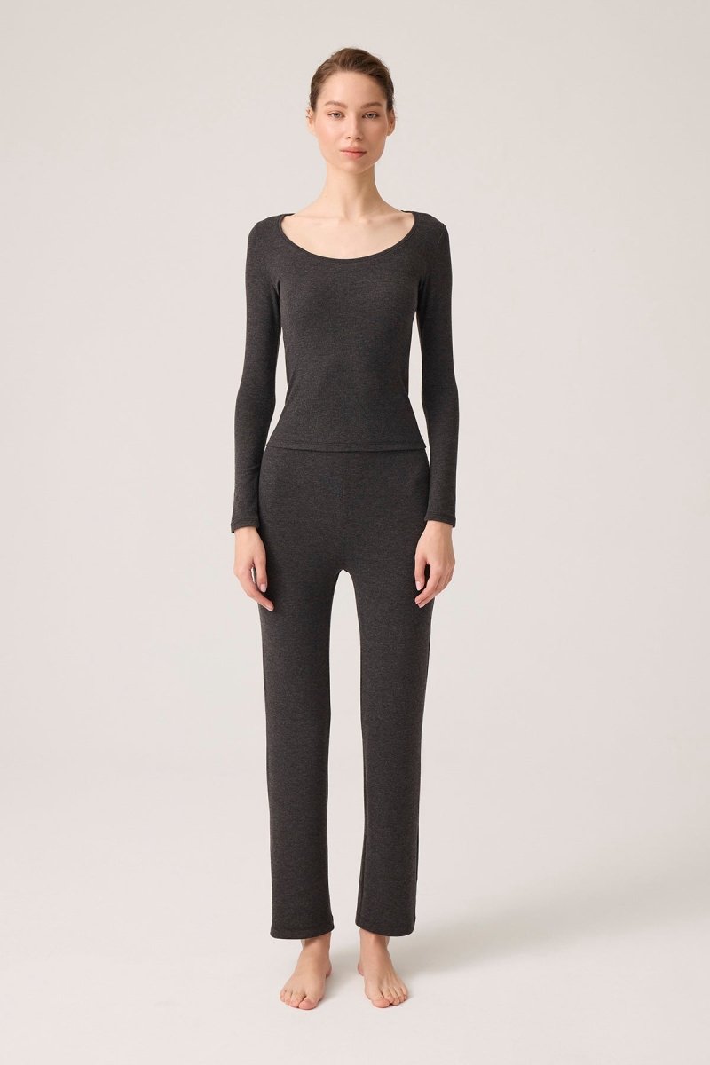 Modal Kumaşlı Uzun Kollu Eşofmanlı Pijama Takımı Ribbed PJ2 (Los Ojos x Ece)
