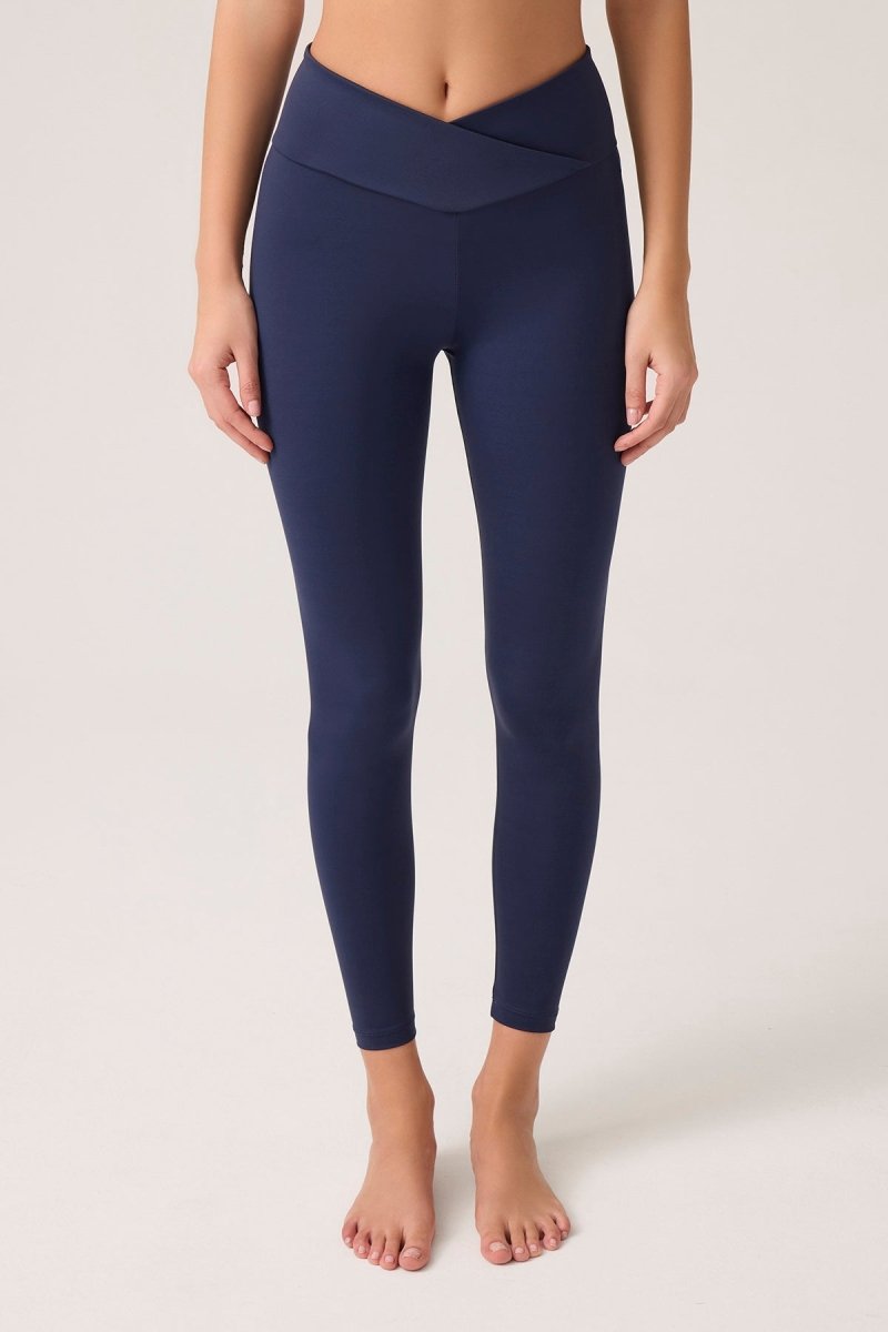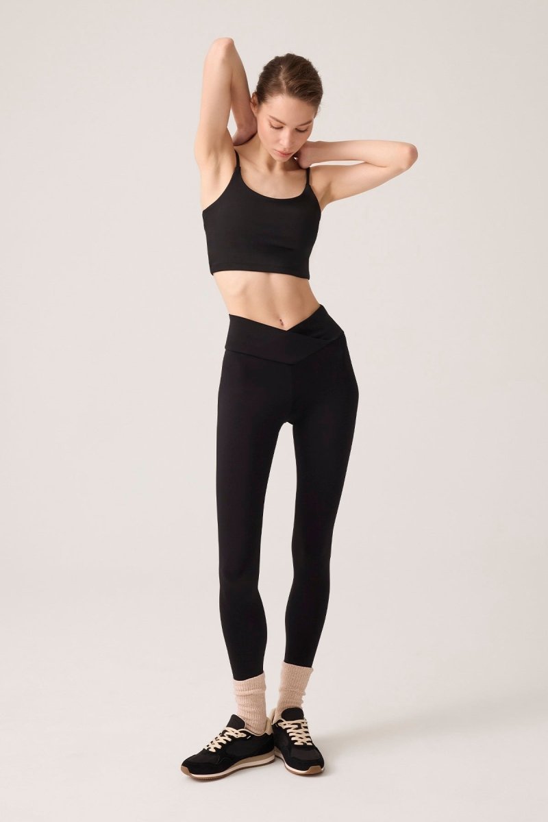 Çapraz bel detaylı yüksek bel tayt.